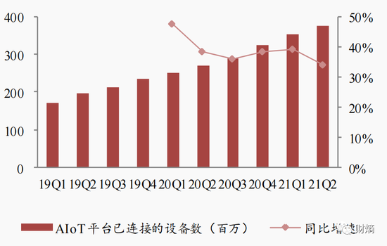 小米 AIoT 平台智能设备连接数增长趋势图源西南证券(4.370, -0.05, -1.13%)