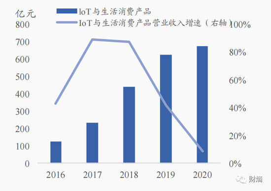 2016-2020年小米IoT与生活消费品营收及增速图源国泰君安(15.390, -0.30, -1.91%)证券