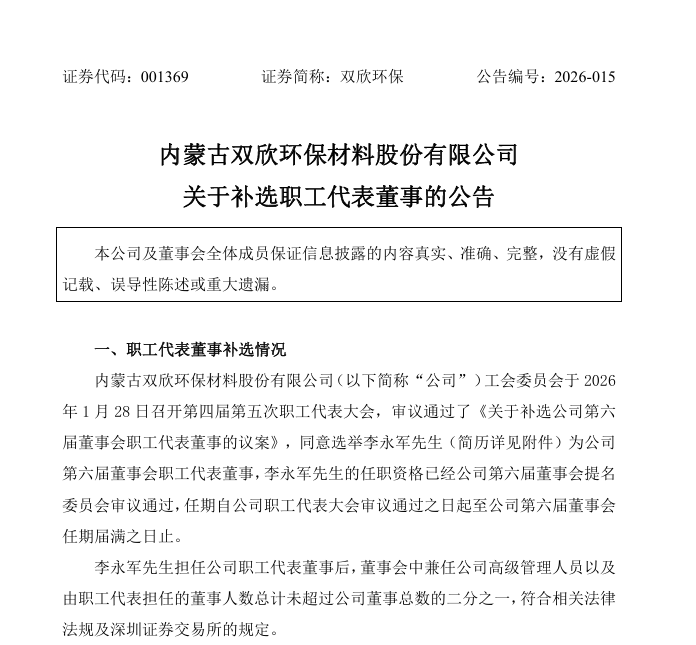内蒙古双欣环保材料股份有限公司(以下简称“公司”)工会委员会于2026